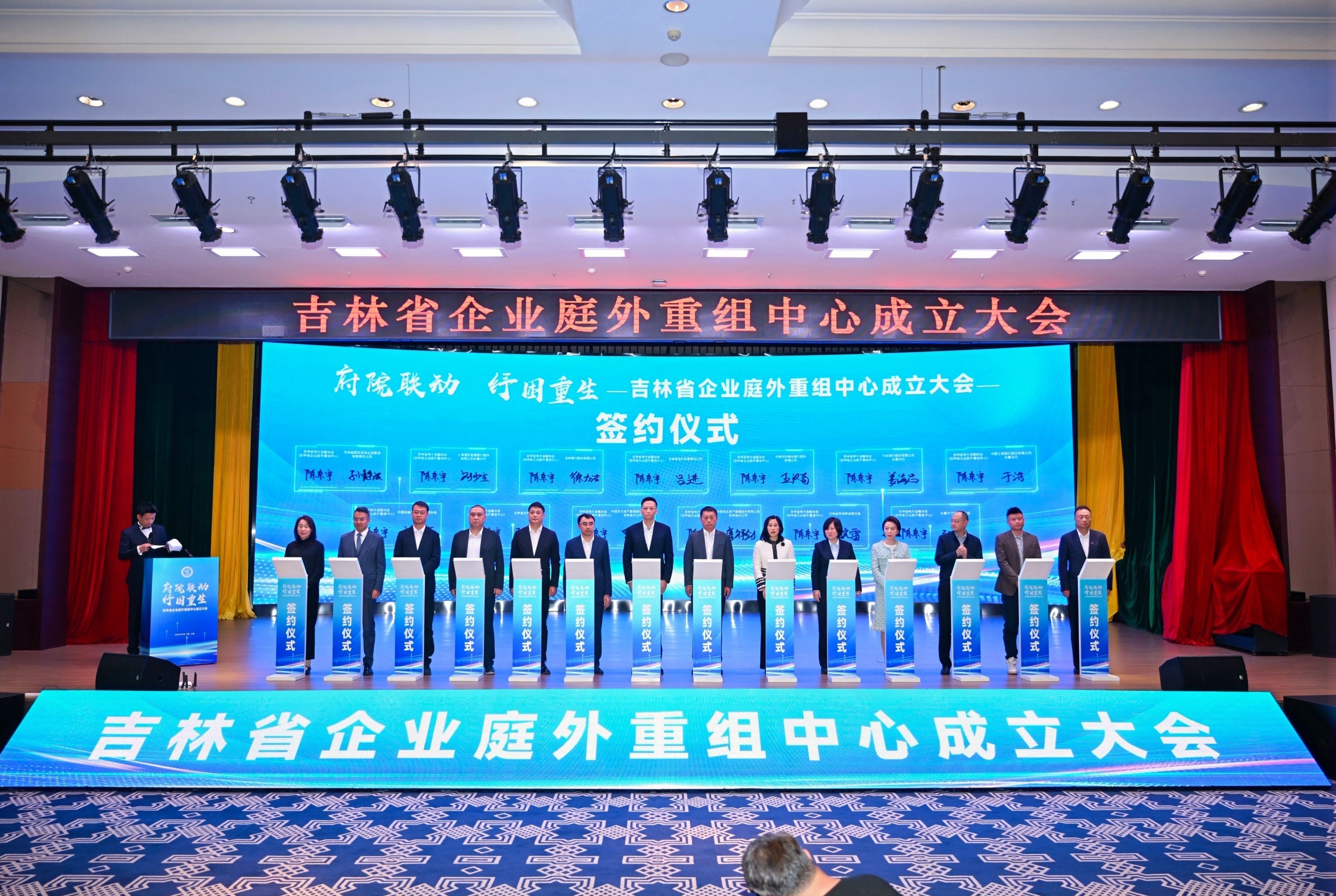 成立仪式上,共建和指导单位相关负责同志共同为“吉林省企业庭外重组中心”揭牌,重组中心分别与中国机械工业企业管理协会等4家协会、中国东方资产管理股份有限公司吉林分公司等3家资产管理公司以及工商银行、吉林银行、吉林农商行等6家金融机构签署战略合作协议,共同推动跨区域、跨行业资源整合与企业纾困重生。